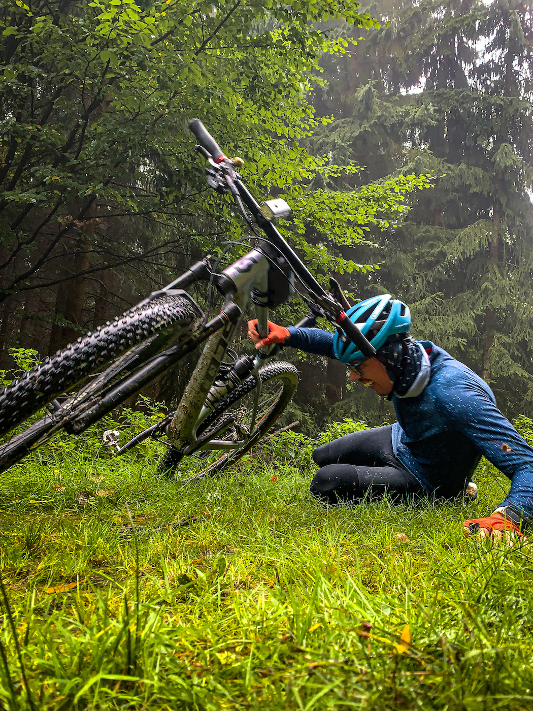 Jazda v lese je nebezpečná, môžeme si dať pozor koľko chceme. Videl som omnoho lepších jazdcov spadnúť. Prilba je základ, o tom sa nemusíme vôbec baviť. Pri dopade som mal poriadny otras hlavy. Pár škrabancov som mal na rukách, nohách a hrudi. Hlava nič, teda okrem otrasu z pádu.
